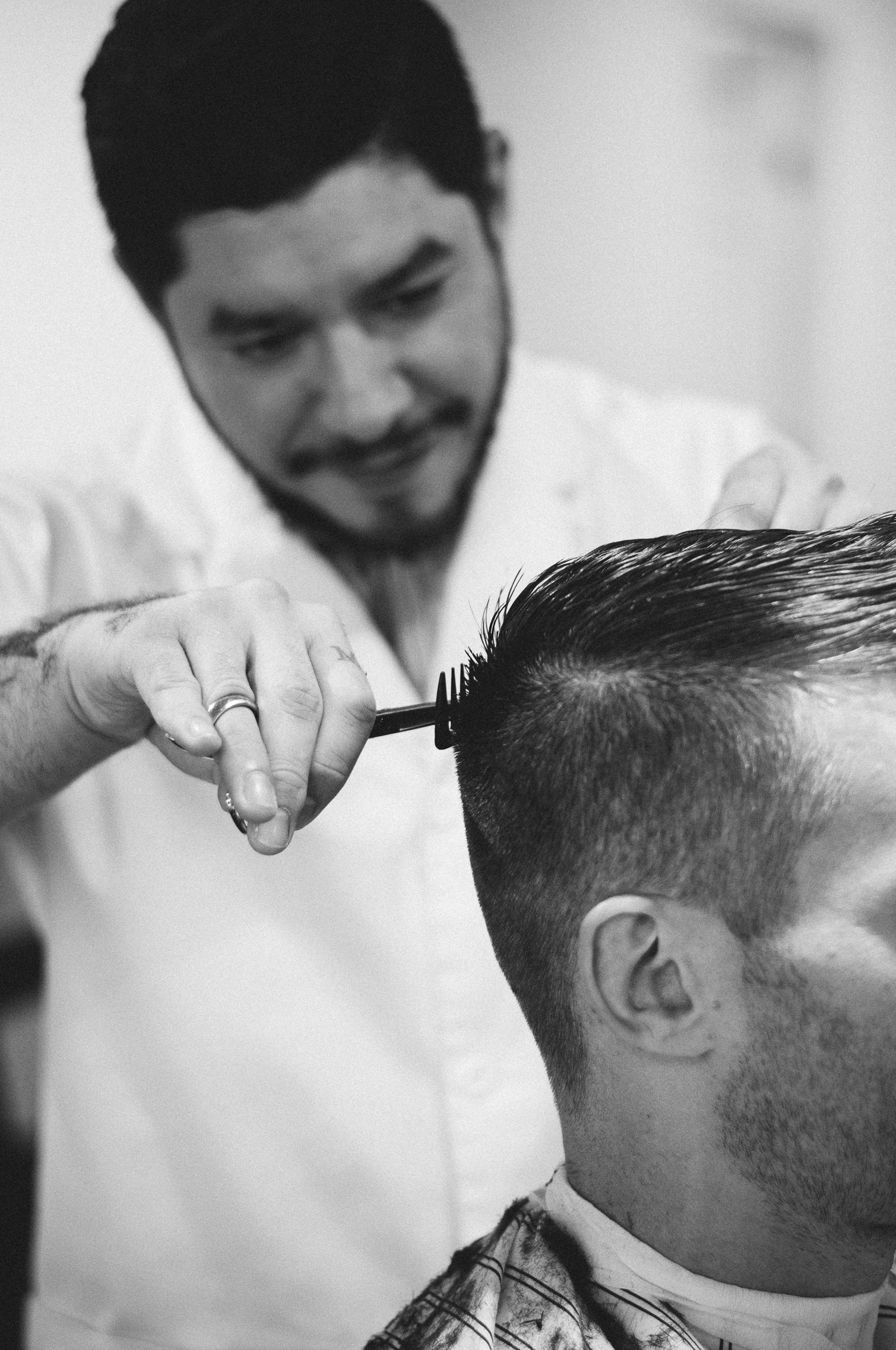 The Argyle League opened in the summer of 2014 in Houston, Texas. To the naked eye, it's a barber shop that offers traditional grooming services for men. Beneath the surface, The Argyle League is "clubhouse open to all" - a place for men to become better versions of themselves, to learn the art of style, and to have a little fun in the process. Carlos Carrillo and his wife Lauren know a thing or two about style - I should know - they are two of my best friends. Carlos has always had impeccable taste and Lauren is like a modern day Audrey Hepburn. Our son Colin had his very first haircut in one of the barber chairs at The Argyle League, which, in my book, is the ultimate seal of approval. I had the pleasure of photographing this space this past fall. Friendship aside, this place is perfect. The white, textured walls offer the most flattering light. The dark stained woods and few hand picked antiques are both masculine and glamorous at the same time. The simplicity of the product and tool displays are curated perfectly to showcase their craft but still look uncluttered. The textiles are traditional stripes and cotton - my favorite. I love everything about The Argyle League! And I know you will, too. Click through the photos to see the space. And if you are ever in Houston, stop in and grab a shave, a haircut or a shoeshine. There is also a really awesome coffee shop next door.
